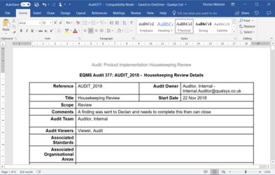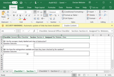 - A Word or Excel copy of the Audit will be displayed similar to below. Any evidence attached to the questions should also be displayed: