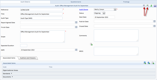 - Save a copy locally if you wish to complete the Audit on a PC where you have no network access. You can complete the Questionnaire with the gathered answers when you return to the office.